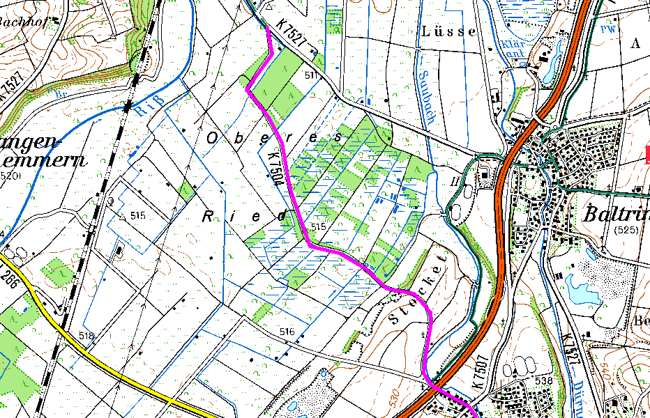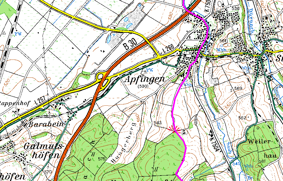 In den Kartenausschnitten ist der Jakobusweg auf dem Gemeindegebiet eingezeichnet (lila).